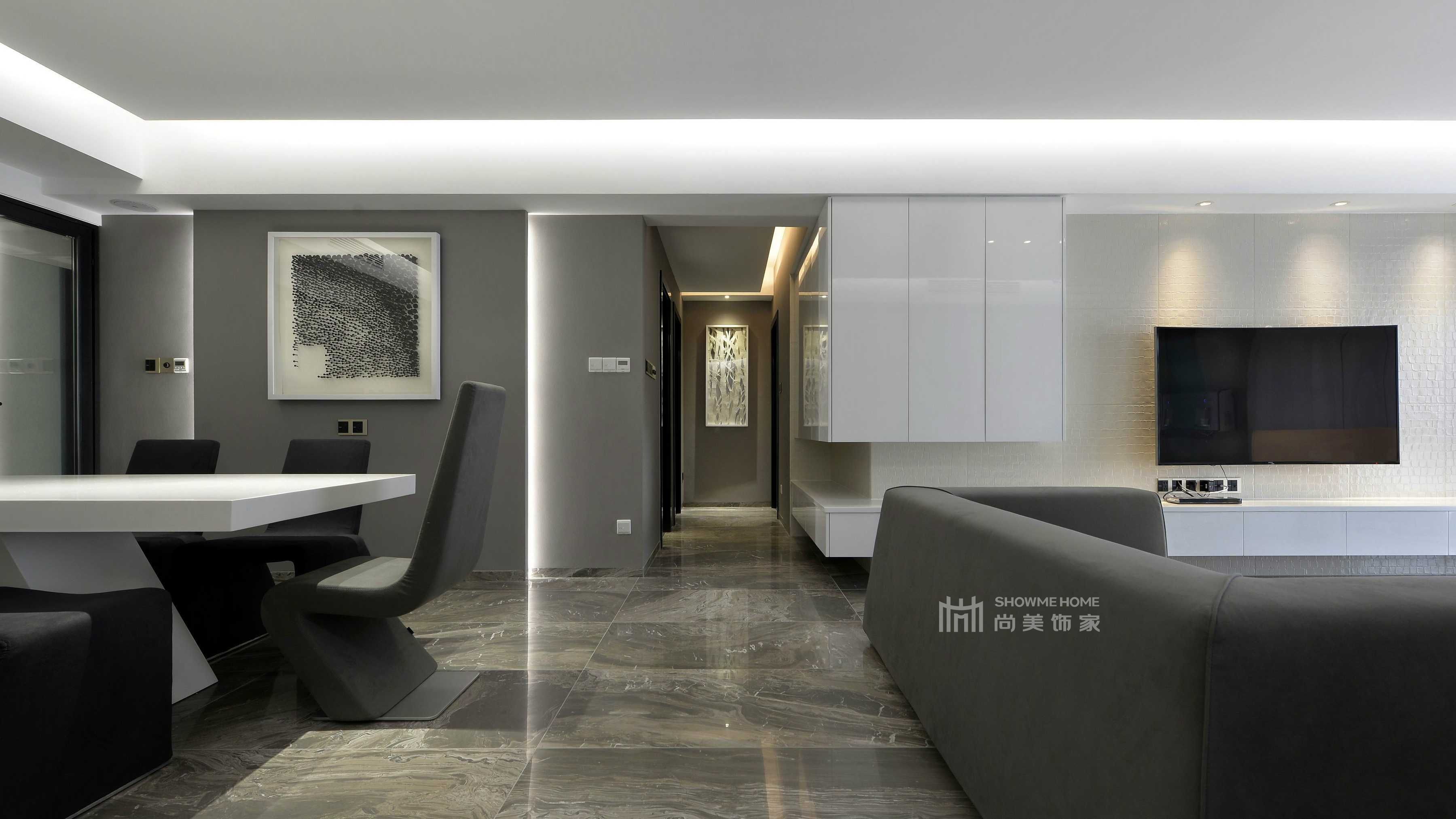 設(shè)計理念:此案例為現(xiàn)代輕奢風(fēng)格,由于客餐廳無陽臺,充分利用;進(jìn)門沙發(fā)背景墻一側(cè)做水族魚缸提高室內(nèi)風(fēng)水,一側(cè)為收納實用柜;餐廳兩側(cè)分別為儲物區(qū),一側(cè)為餐邊柜酒柜,一側(cè)為鞋柜衣帽區(qū);入戶進(jìn)門后南側(cè)為矮柜隔斷,提高室內(nèi)隱私性。