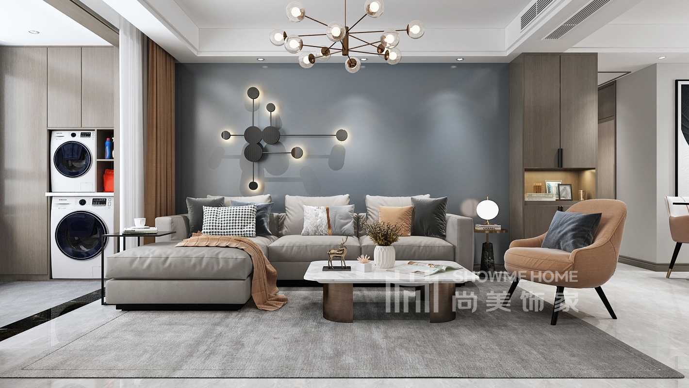 設(shè)計(jì)理念:三室兩廳,建筑面積110㎡,設(shè)計(jì)風(fēng)格為簡(jiǎn)美。居住人口3口人,業(yè)主喜歡顏色鮮艷、手感細(xì)膩、坐感舒適的皮質(zhì)沙發(fā),兩側(cè)分別擺放了與灰色的沙發(fā)凳和體量感較大的藍(lán)色真皮沙發(fā),色調(diào)主次分明,整體協(xié)調(diào)、溫暖,圍合式布局的擺放形式更是讓室內(nèi)充盈著溫馨、舒適的居家感。餐桌兩側(cè)分別擺放較高的玻璃透明餐邊柜柜,滿足了餐廳的收納需求。